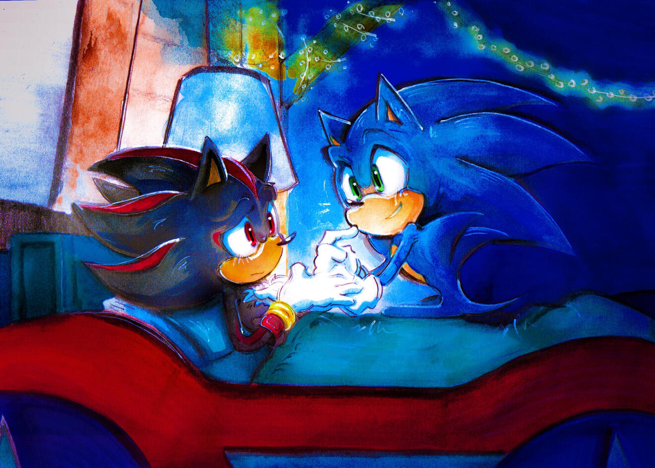 A hand-made figure of Shadow the Hedgehog sleeping flat with his hands lying on his chest, one leg lightly rise up. He is surrounded by dry flowers, led light in a shape of a circle behind his back reviling his logo. The whole composition closed under a oval bubble glass, supported by a metal frame.The glass and the metal frame are ordered locally from other professionals.
